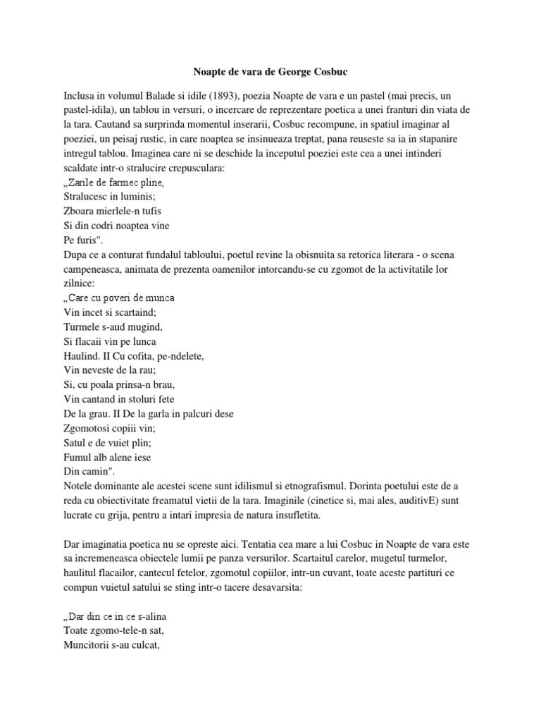 Noapte De Vara De George Cosbuc Anideșcoală Ro